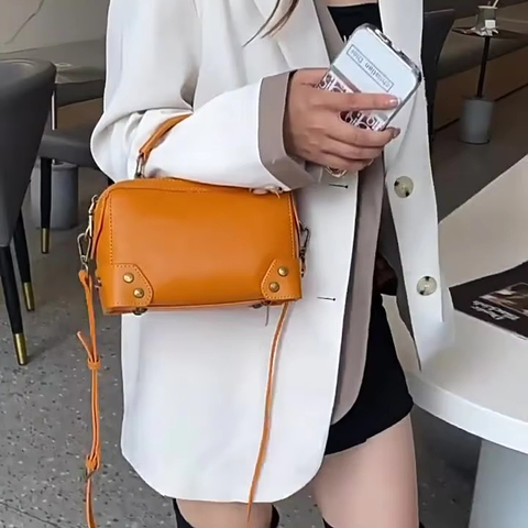2025 nuevo bolso cruzado de cuero genuino para mujer, bolso de hombro cuadrado pequeño de piel de vaca suave, bolso de mano versátil a la moda